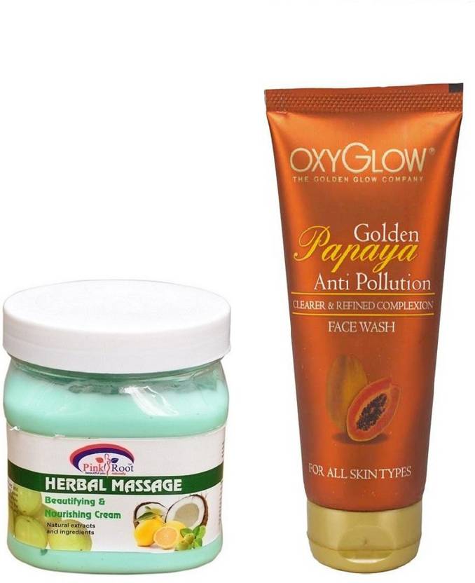 Pink Root Herbal Massage Cream 500ml With Oxyglow Golden Papaya Face