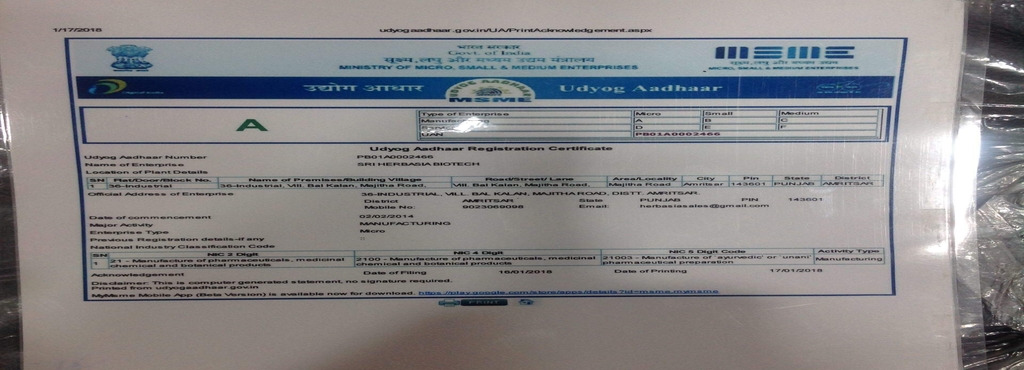 Shri Herb Asia Biotech Khanna Nagar Food Product Manufacturers In